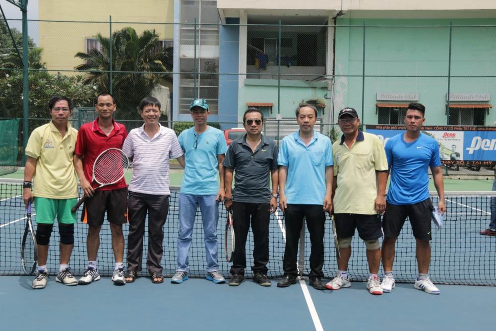 Ban tổ chức chụp hình lưu niệm với 2 cặp đôi vào Chung kết môn quần vợt