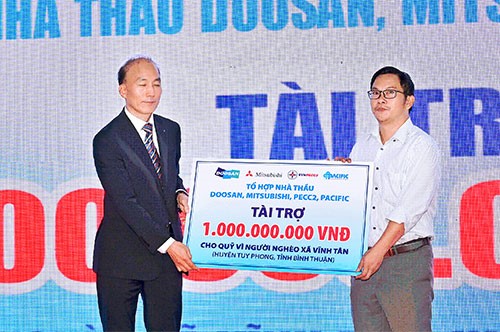 Cũng tại buổi lễ, nhân dịp khánh thành Nhà máy Nhiệt điện Vĩnh Tân 4, Tổ hợp Nhà thầu DMPP đã trao tài trợ 1 tỷ đồng cho Quỹ vì người nghèo xã Vĩnh Tân, huyện Tuy Phong, tỉnh Bình Thuận