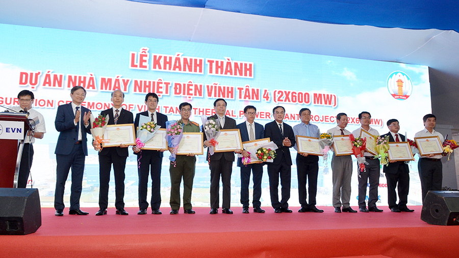 Đánh giá cao thành công của dự án Nhà máy Nhiệt điện Vĩnh Tân 4 và ghi nhận những nỗ lực của các đơn vị tham gia dự án, Tập đoàn Điện lực EVN đã tặng Bằng khen cho các Thành viên Tổ hợp Nhà thầu EPC DMPP (Doosan - Mitsubishi - PECC2 - Pacific), Ban QLDA Nhiệt điện Vĩnh Tân và các đơn vị liên quan đã có thành tích xuất sắc, có nhiều đóng góp vào thành công chung của dự án.