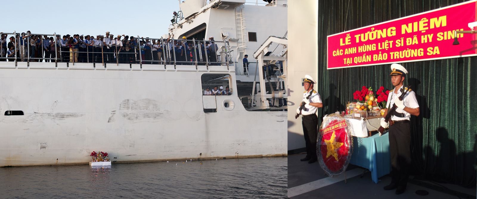 Lễ tưởng niệm được tổ chức trên tầu hải quân, đơn giản và trang nghiêm.