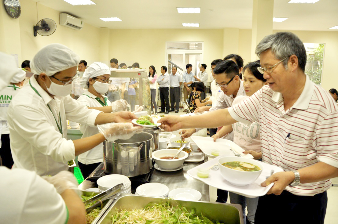Không chỉ phục vụ bữa ăn trưa, Căn tin còn phục vụ bữa sáng cho NLĐ từ 6:30 tới 7:40 vào các ngày làm việc trong tuần. Thực đơn khá đa dạng với các món ăn 3 miền như: bún bò Huế, phở, hủ tíu, mì Quảng, mì xào, bánh mì ốp la, cà ri bánh mì… hấp dẫn không thua gì các quán ăn có tiếng trong thành phố.