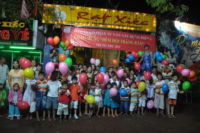 With the concern and support from company leaders, Mid-Autumn Festival program was jointly held by PECC2 Executive Board of Youth Union and Ho Chi Minh Circus Troupe at 19:30 on September 9, 2011 (or August 12 – lunar calendar) at City Circus, No.2, Pham Ngu Lao street, District 1. Accompanied with presents for studying encouragement which had been distributed before, the program was a beloved gift of PECC2 sending to children of PECC2’s employees on the threshold of a new school year.
