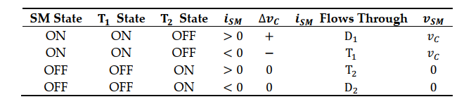 Bảng 1. Trạng thái đóng cắt của mỗi mô-đun SM