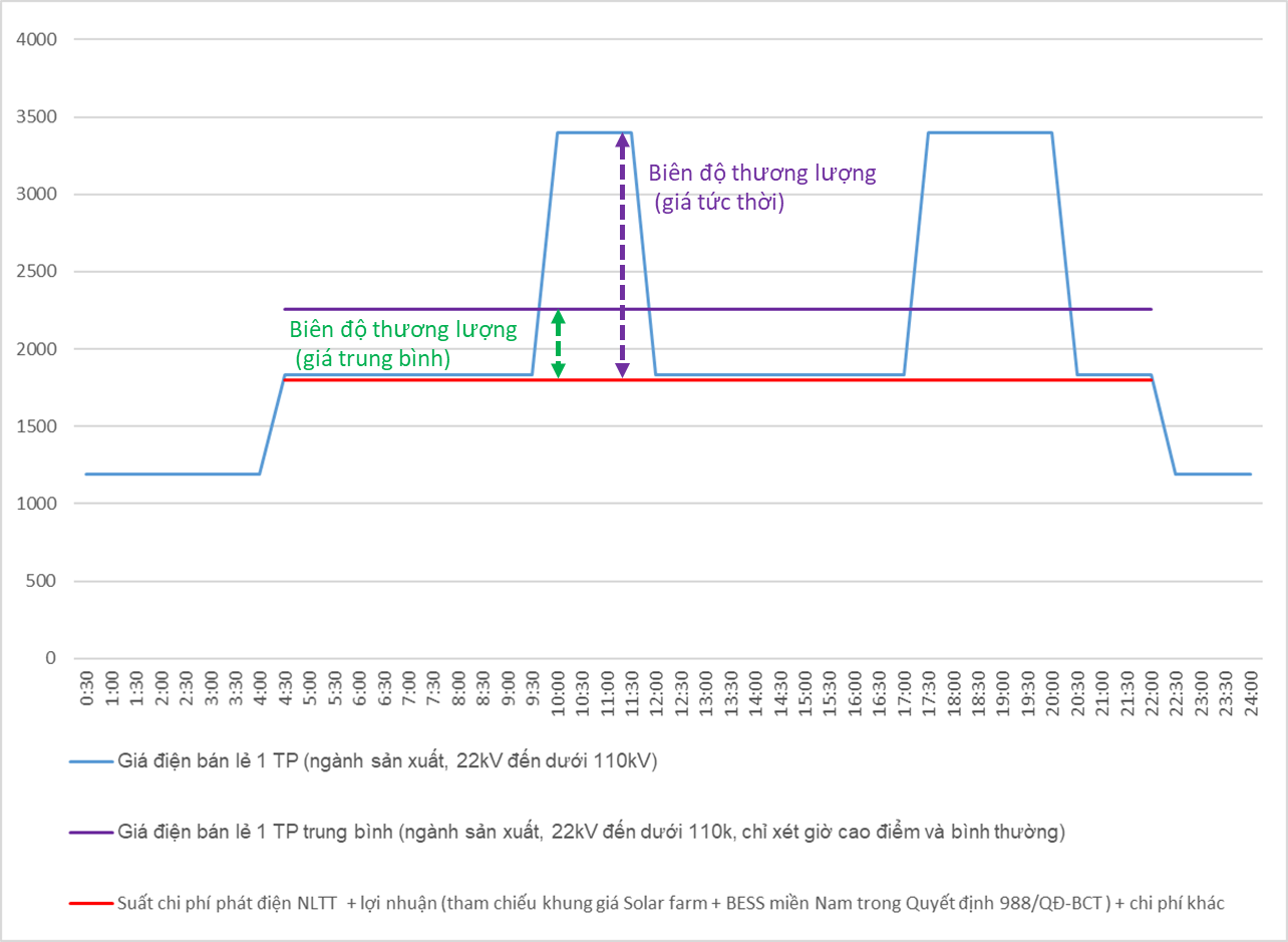 Biên độ này, trong cơ chế giá điện bán lẻ hiện hành (một thành phần) là một trong những động lực quan trọng cho cả hai bên bán và mua trong việc tham gia cơ chế DPPA.
