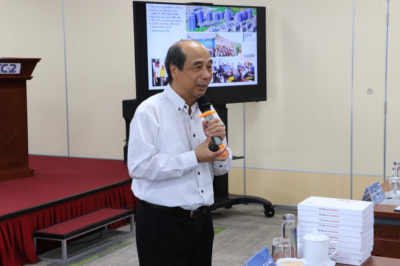 Tại buổi hội thảo, GS Hồ Tú Bảo đã giới thiệu về khái niệm Chuyển đổi số và Cách mạng công nghiệp lần thứ tư với các cấp độ từ số hóa thông tin, khai thác cơ hội số và chuyển đổi; các khái niệm như số hóa, kinh tế số, nền tảng số. GS Bảo cũng đã đưa ra rất nhiều dẫn chứng về quá trình chuyển đổi số ở các doanh nghiệp lớn trên thế giới cũng như ứng dụng của công nghệ số vào các lĩnh vực khác nhau của đời sống xã hội. Đồng thời, ông cũng đưa ra một số ý kiến và định hướng cho kế hoạch nâng cao năng lực số của PECC2.