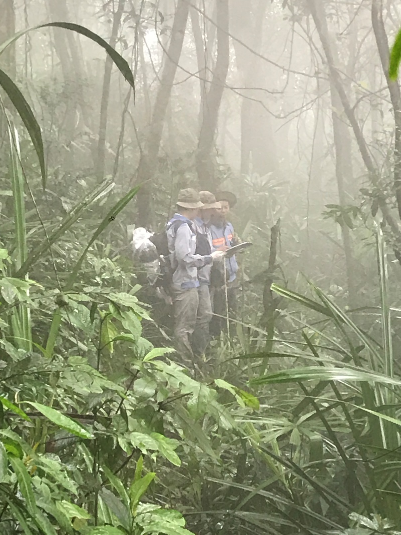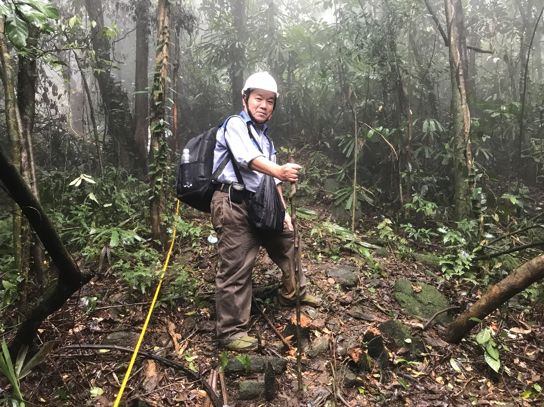 Hình 4. Tác giả ở cao độ +550m, còn phải leo cao hơn 200m nữa mới đến WTG-9