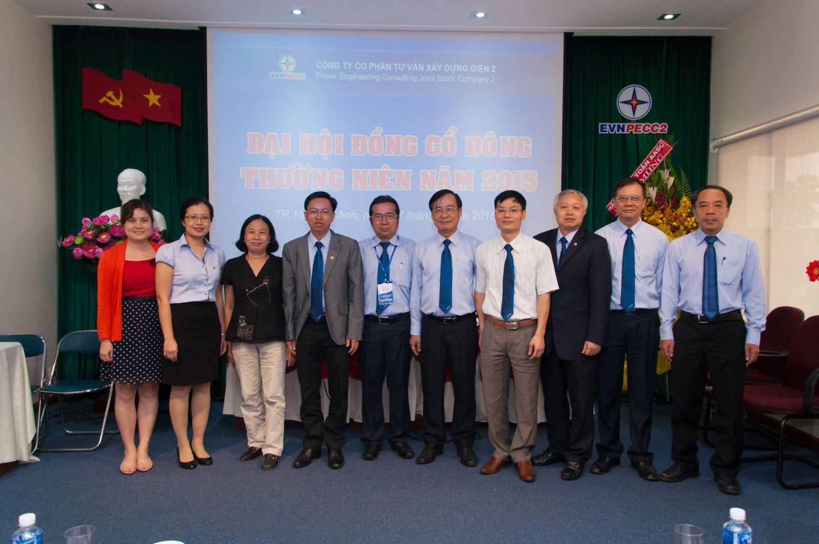 HĐQT, Ban kiểm soát, ban TGĐ TV2 cùng Ô. Cao Đạt Khoa (đại diện EVN) chụp ảnh kỷ niệm tại Đại hội cổ đông thường niên TV2 năm 2015