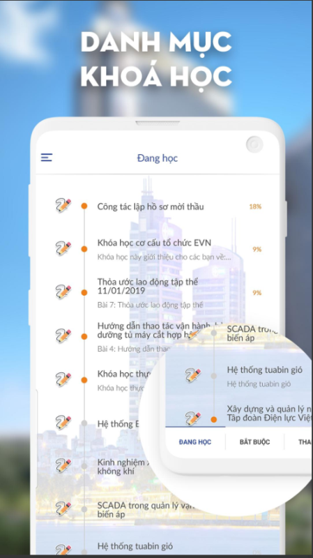 Trong lĩnh vực năng lượng, Tập đoàn Điện lực Việt Nam đã thử nghiệm phương pháp đào tạo eLearning từ tháng 7/2018, hoạt động trên hệ thống LotusLMS. Các khóa học hiện có trên nền tảng eLearning của EVN gồm “Văn hóa Tập đoàn Điện lực Việt Nam”, “Khóa học thực hành 5S”, “Khóa học cơ cấu tổ chức EVN”… Nội dung đào tạo do nội bộ EVN biên soạn hoặc mua bản quyền từ các tổ chức đào tạo trong nước và quốc tế. Hệ thống LotusLMS cho phép ghi nhận chi tiết hành vi và lộ trình học của người dùng và báo cáo đến quản trị viên, có diễn đàn để người học tương tác, các kì thi trực tuyến được tổ chức công khai và nhanh chóng nhờ sử dụng ngân hàng đề thi lưu trữ [6].