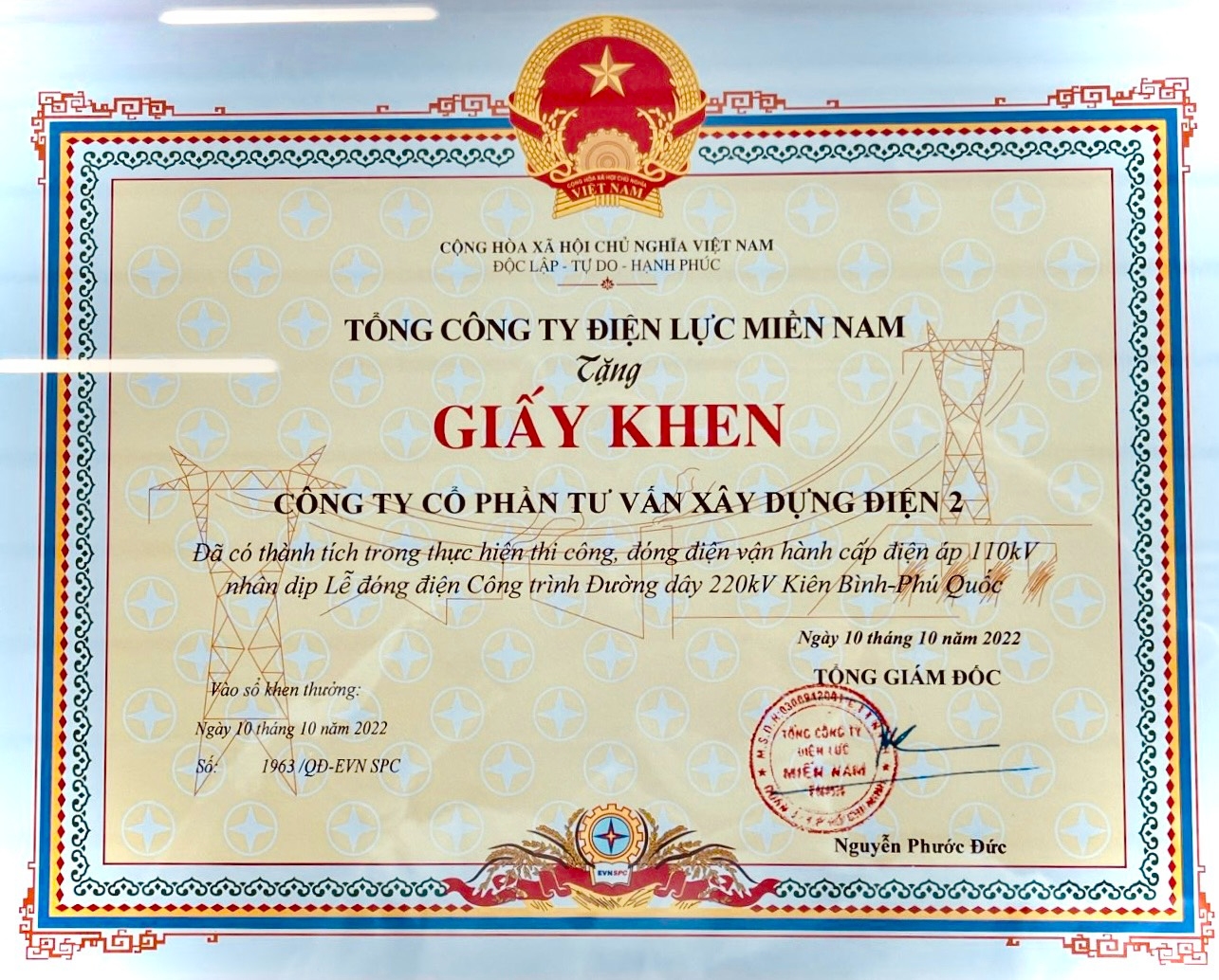 Vinh dự đồng hành cùng quá trình thực hiện dự án, PECC2 đã chủ trì công tác lập hồ sơ bổ sung quy hoạch, khảo sát, lập dự án đầu tư xây dựng, thiết kế kỹ thuật và thiết kế bản vẽ thi công toàn bộ dự án. Ghi nhận những đóng góp này, EVNSPC đã trao tặng bằng khen cho PECC2, vinh danh tập thể và cá nhân đã có thành tích xuất sắc trong công tác thực hiện thi công, đóng điện và vận hành giai đoạn 1.