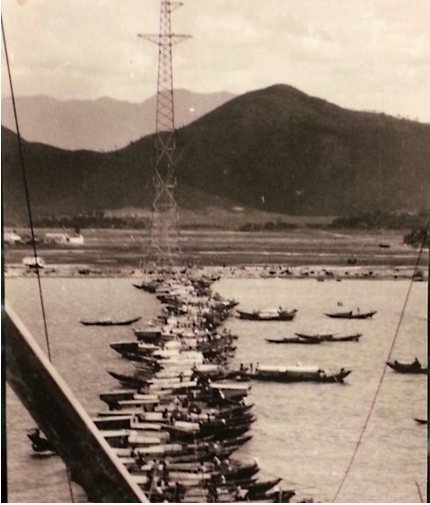 Ghép 230 thuyền đánh cá để kéo dây vượt sông Gianh đưa điện từ miền Bắc vào miền Trung. Ảnh: Bích Liên.