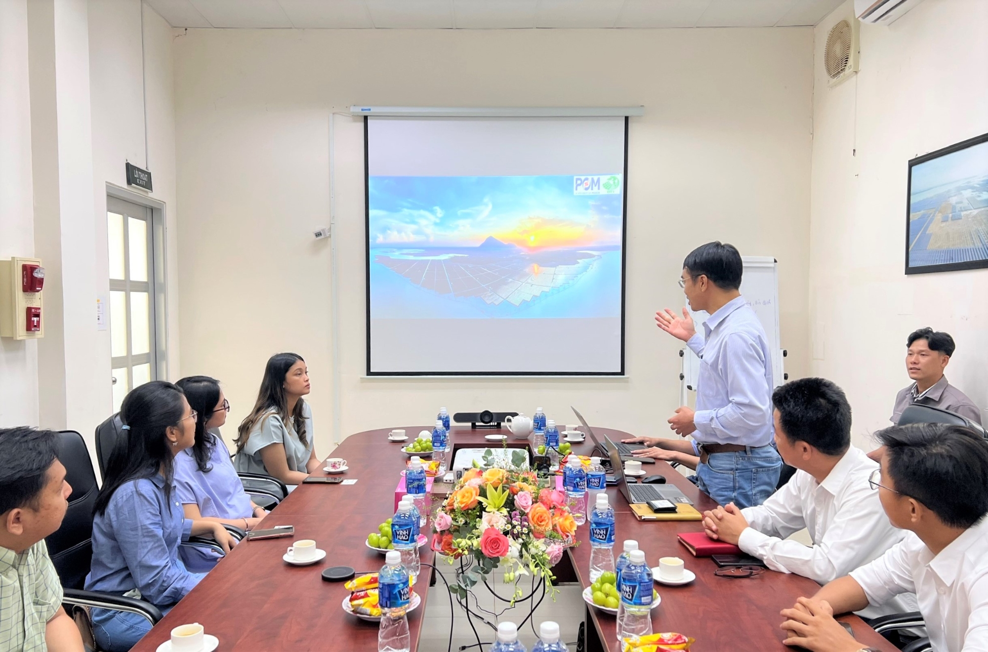 Ông Nguyễn Quốc Văn - Phó Giám đốc Chi nhánh PECC2POM chủ trì giới thiệu sơ lược về nhà máy Điện mặt trời Dầu Tiếng 1.