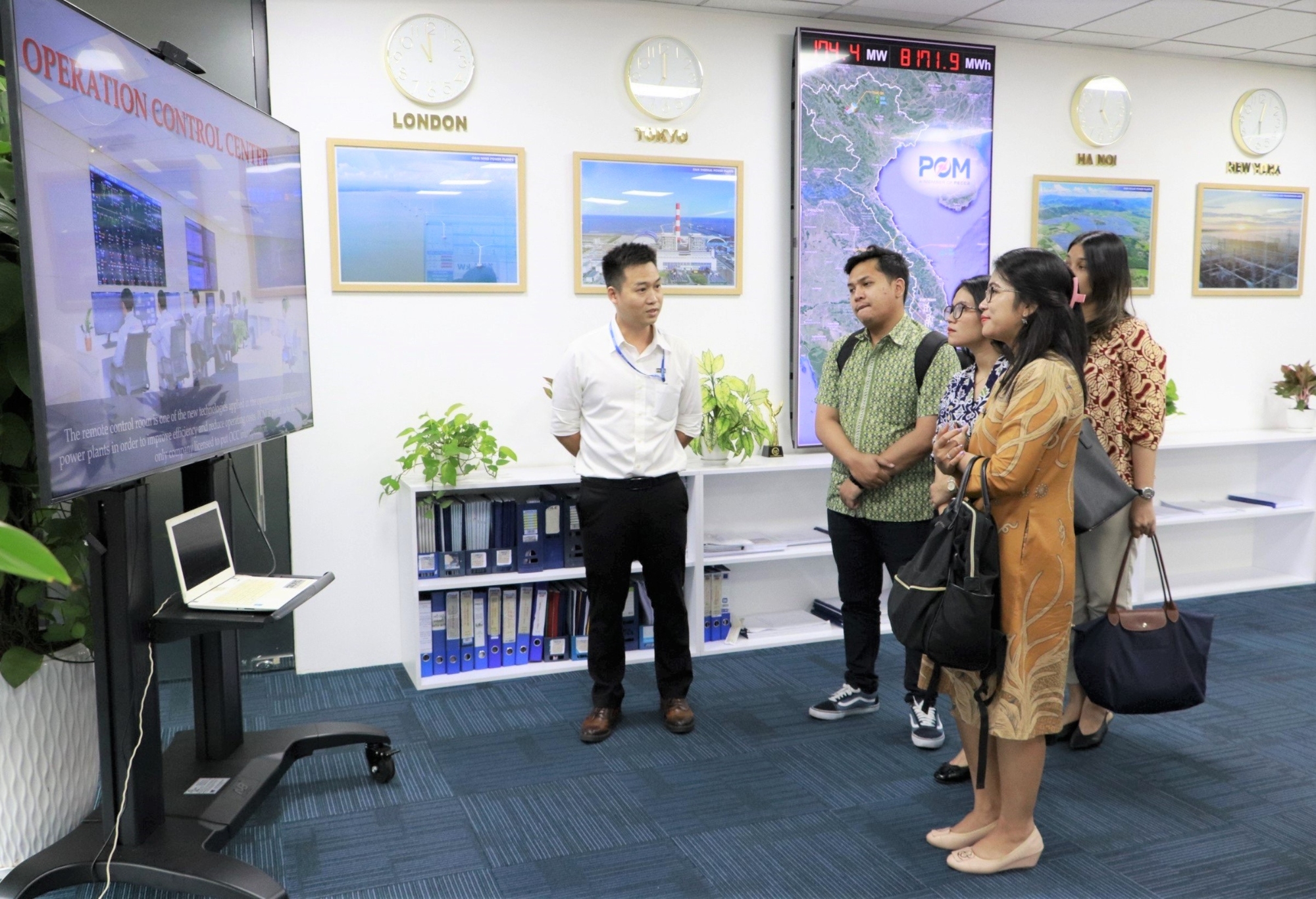 Đoàn công tác PLN được giới thiệu về Trung tâm Vận hành Nhà máy điện từ xa (EVNPECC2-OCC).