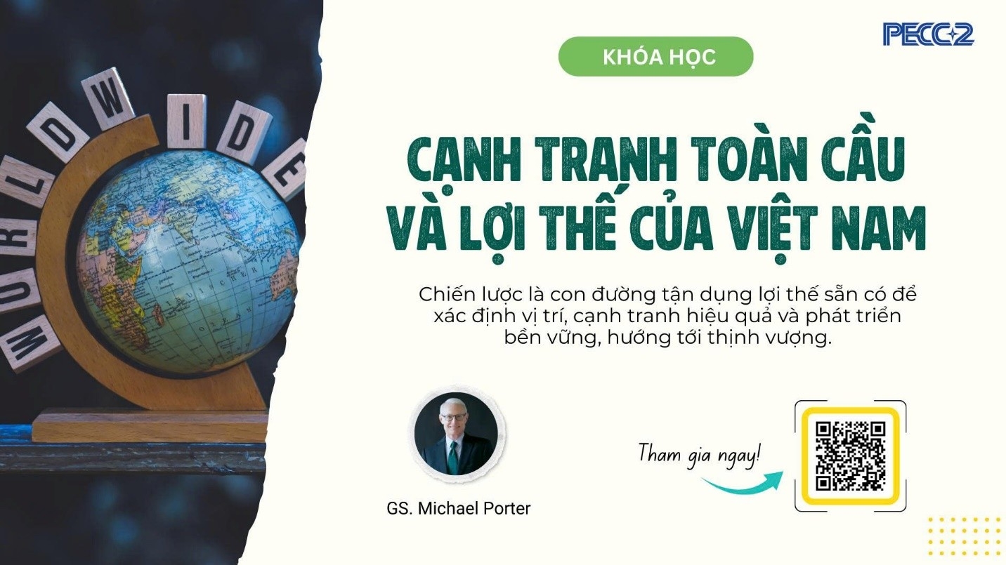 Truy cập hệ thống PECC2 Elearning và tìm kiếm từ khóa “Cạnh tranh toàn cầu và lợi thế của Việt Nam” hoặc nhấn vào đây để tham tham gia khóa học ngay.