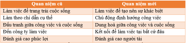 Bên cạnh việc tạo ra sản phẩm cho khách hàng, HubSpot còn đặc biệt hướng tới tạo ra sản phẩm cho nhân viên, hay nói cách khác chính là xây dựng môi trường văn hóa hấp dẫn những nhân tài. Bởi lẽ họ nhận ra rằng, yêu cầu và nhu cầu của nhân viên đối với công ty ngày nay đã thay đổi đáng kể so với trước. Sự khác biệt này được thể hiện trong bảng so sánh sau đây: