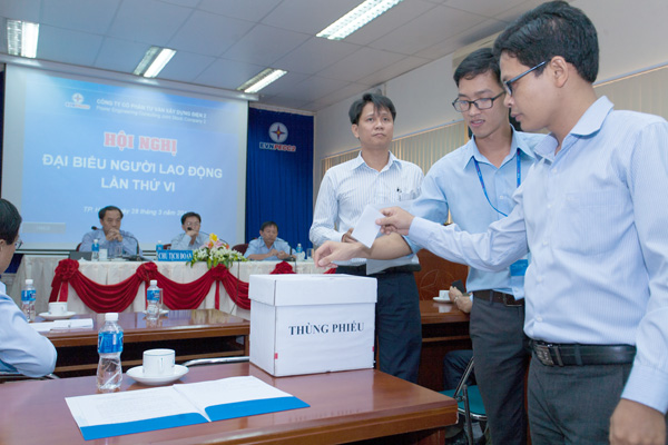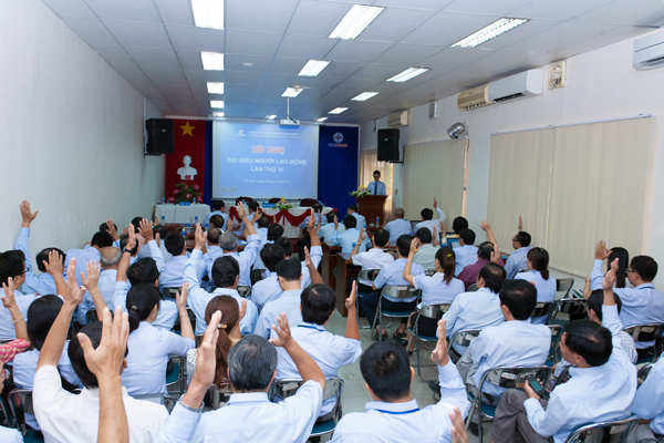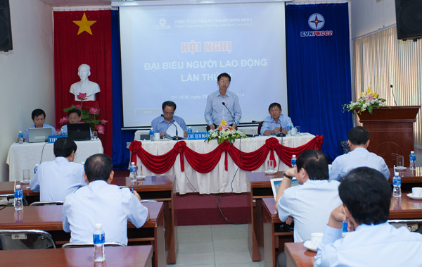Đại diện của Phòng Tổ chức – Nhân sự và phòng Tài chính - Kế toán đã lần lượt báo cáo tình hình thực hiện các chế độ chính sách liên quan tới quyền và lợi ích của NLĐ năm 2013, công khai mức trích lập quỹ khen thưởng, quỹ phúc lợi theo quyết định của Đại hội cổ đông, trích nộp bảo hiểm xã hội, bảo hiểm y tế; công khai tài chính, trích nộp kinh phí công đoàn, tình hình sử dụng quỹ nhân đạo; quỹ phúc lợi, khen thưởng. Với vai trò Chủ tịch Công đoàn, Ông Nguyễn Quốc Công đã báo cáo lại kết quả tổ chức hội nghị NLĐ cấp Phòng, Trung tâm, Xí nghiệp. Qua đây, Ông Nguyễn Quốc Công cũng đã giải thích các ý kiến cũng như các thắc mắc liên quan đến trách nhiệm và quyền hạn của NLĐ. Chủ tịch Công đoàn cũng đã phát động phong trào thi đua toàn Công ty để phát huy truyền thống đoàn kết sáng tạo, ra sức thi đua lao động sản xuất nhằm hoàn thành vượt mức kế hoạch được giao.