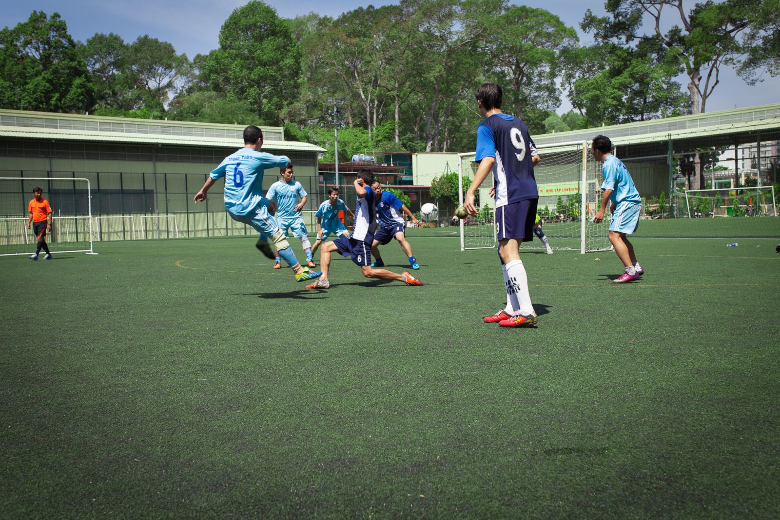 Đội bóng TNĐ2 trong một pha tấn công về phía khung thành XNCĐ trong trận tranh hạng Ba