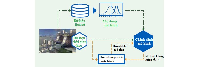 Các kỹ thuật trí tuệ nhân tạo được sử dụng trong công nghệ song sinh số nhà máy điện GE là: Nhận dạng mẫu, các mô hình học giám sát/không giám sát, phân tích dữ liệu phi cấu trúc, phân tích dữ liệu đa phương thức, mạng tri thức. Hình dưới đây trình bày quá trình đồng bộ hóa bản sao số với nhà máy điện thông qua kỹ thuật học có giám sát.