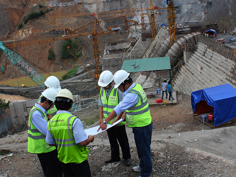 Các kỹ sư Công ty CP Tư vấn Xây dựng Điện 2 thực hiện giám sát tác giả tại công trường xây dựng NM Thủy điện Đồng Nai 5