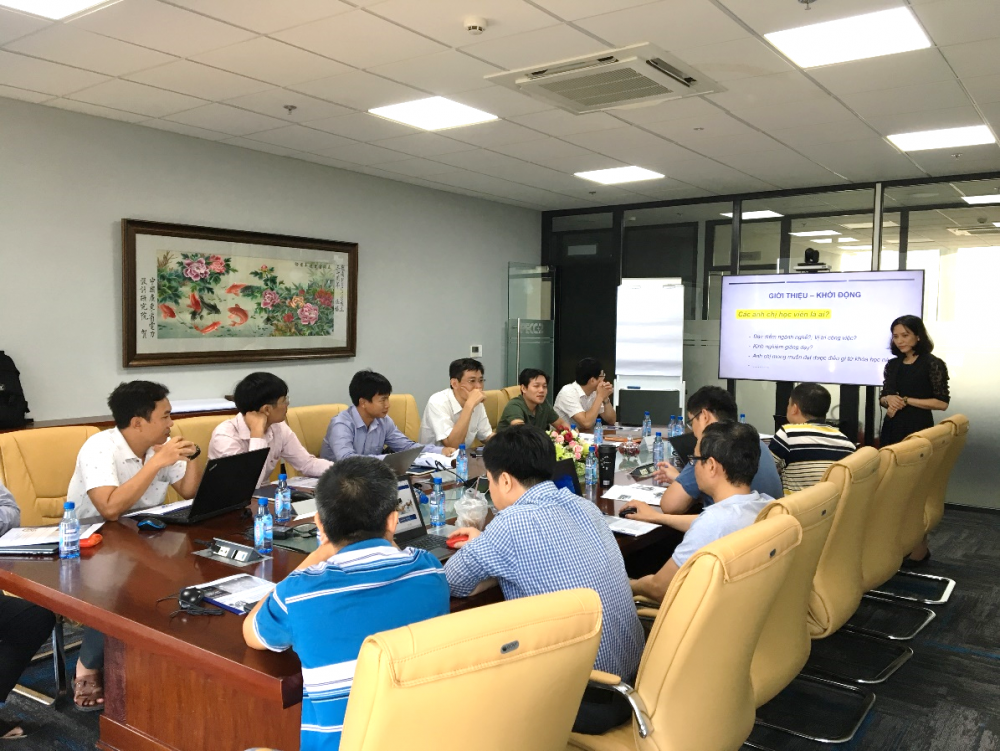 Trong buổi học đầu tiên, các học viên được yêu cầu lựa chọn một chủ đề dạy học. Đồng thời thực hành viết mục tiêu dạy học cho chủ đề đã chọn và cách triển khai các nội dung bài học tương ứng với mục tiêu đề ra. Lớp học diễn ra trong bầu không khí sôi nổi và hào hứng. Dưới sự hướng dẫn của giảng viên, các học viên đã trình bày về kết quả bài tập của mình và cùng nhau trao đổi, học hỏi để vận dụng hiệu quả hơn những kiến thức được học vào thực tế.