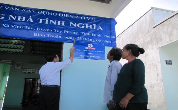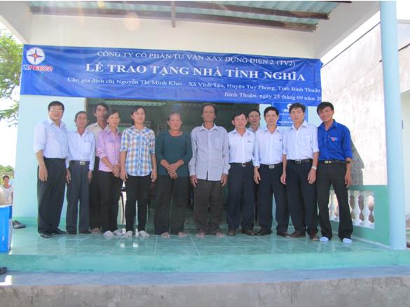 Ngày 23 tháng 9 năm 2010, tại Xã Vĩnh Tân, Huyện Tuy Phong, Tỉnh Bình Thuận, Công ty Cổ phần Tư vấn Xây dựng Điện 2 (TV2) đã long trọng tổ chức trao nhà tình nghĩa cho gia đình chị Nguyễn Thị Minh Khai.