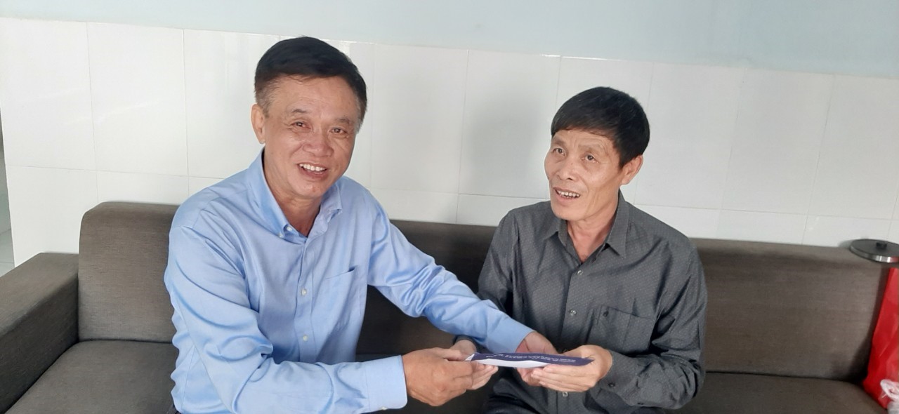 Ảnh: Ông Phạm Văn Luyện thăm hỏi và tặng quà đồng nghiệp vừa mổ tim
