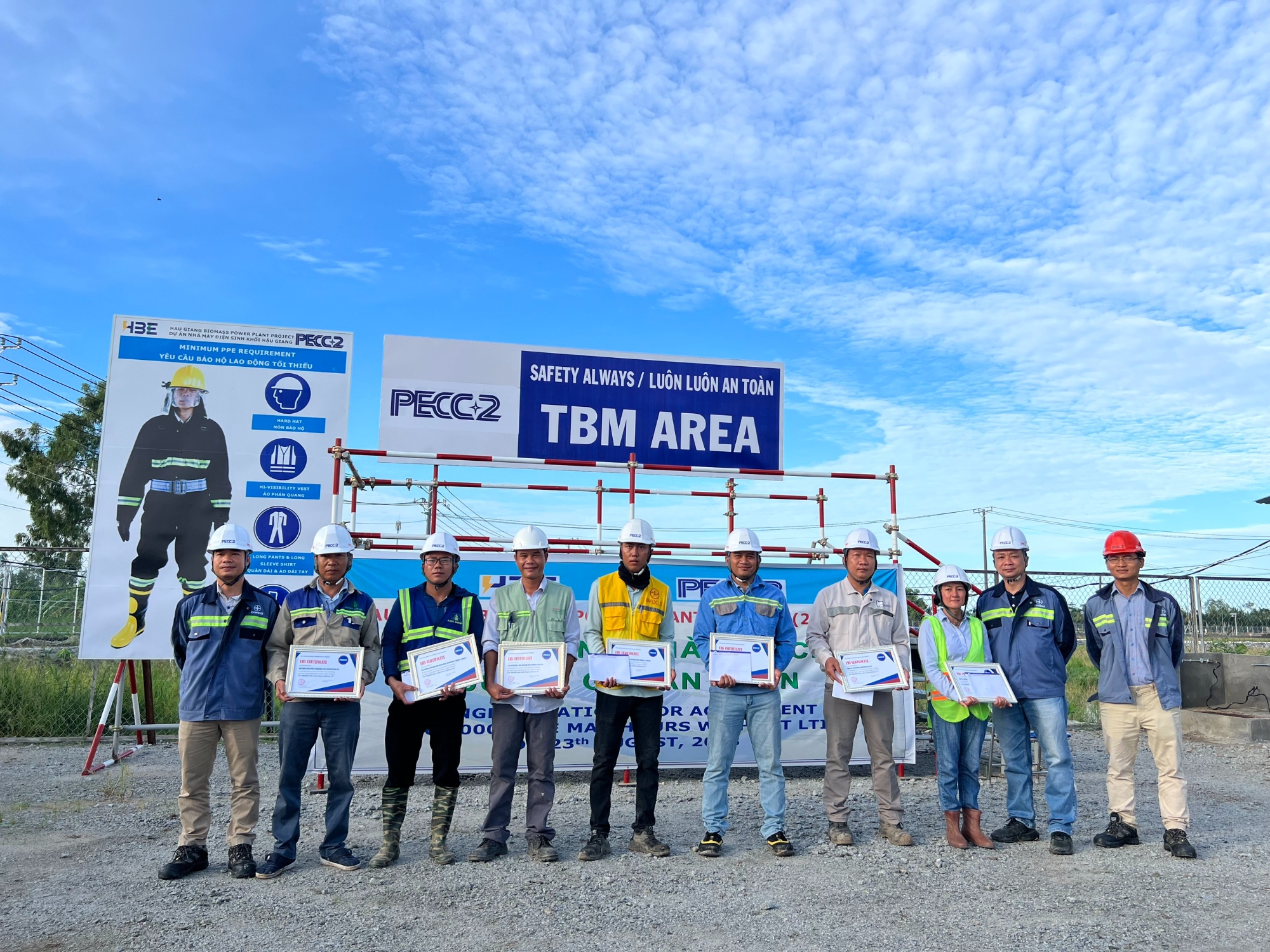 Với vai trò là tổng thầu EPC, tại buổi lễ, PECC2 đã trao bằng khen chúc mừng các Nhà thầu phụ vì đáp ứng được các quy định tiêu chuẩn về an toàn lao động, trong suốt quá trình thực hiện thi công dự án không có sự cố đáng tiếc nào xảy ra.