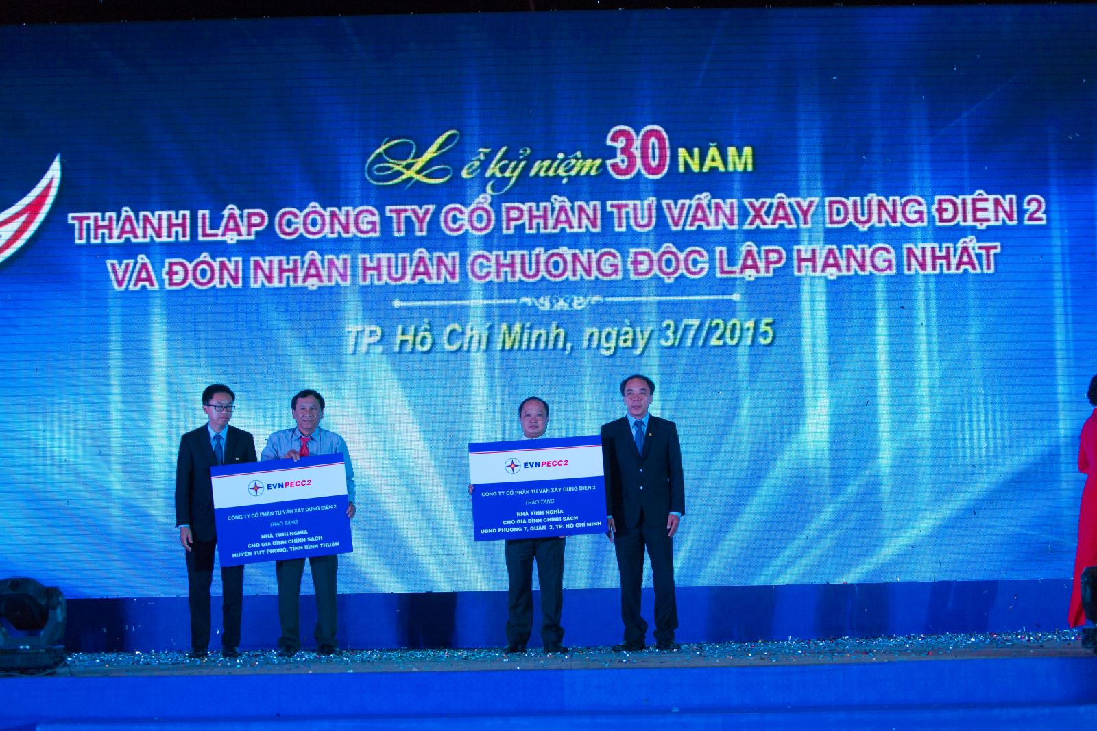 Following the tradition 'Joining hand for the development of community', at the celebration, PECC2 also presented one house of gratitude to the People's Committee of District 3, Ho Chi Minh City and another one for to People's Committee of Tuy Phong District, Binh Thuan Province to share difficulties with the community.