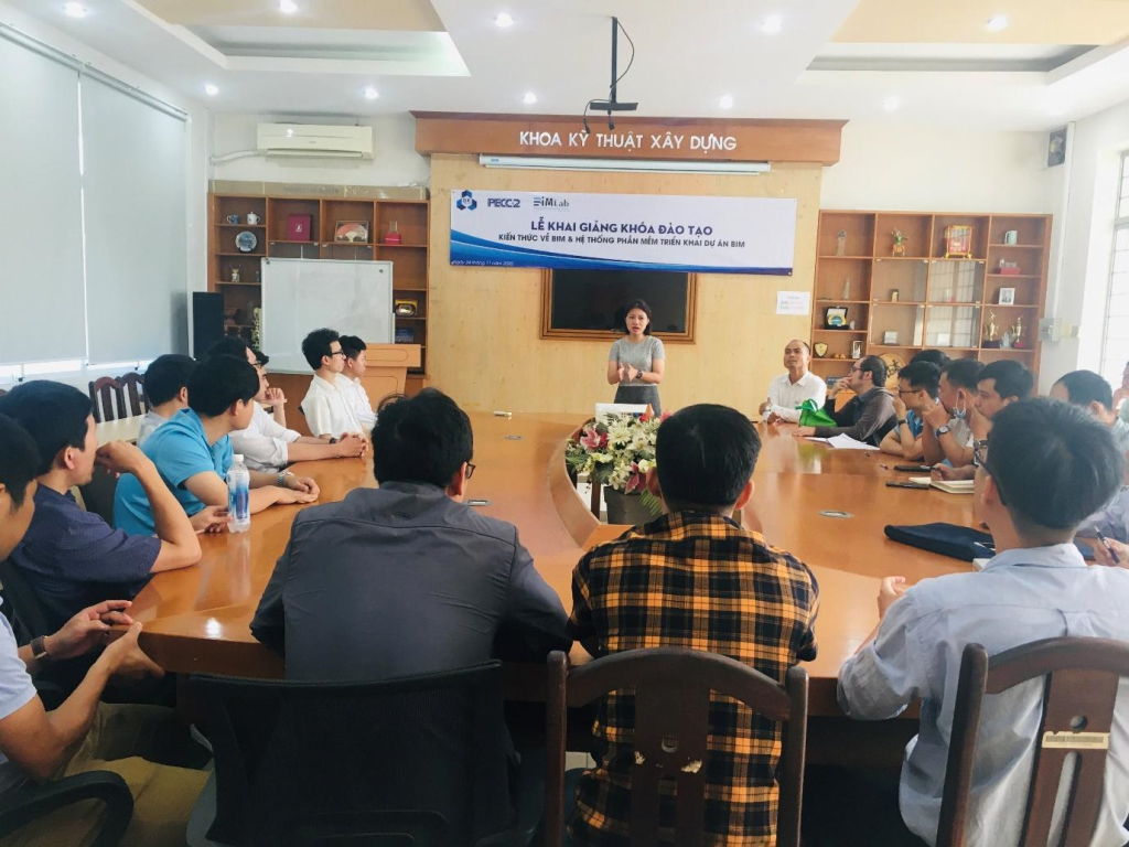 Để cụ thể hóa thỏa thuận hợp tác này, ngay chiều ngày 02/11/2020, trường ĐHBK đã tổ chức khóa đào tạo “Kiến thức cơ bản về mô hình thông tin số công trình (BIM) – Scan to BIM và ứng dụng BIM quản lý dự án” trong 8 buổi với 30 giờ đào tạo cho các kỹ sư của PECC2. Tại đây, các kỹ sư của PECC2 đã được cung cấp các kiến thức tổng quan về BIM, về Scan to BIM và các loại thiết bị, quy trình để thực hiện Scan to BIM. Ngoài ra, khóa học cũng hướng dẫn các kỹ sư làm quen và thực hành sử dụng các phần mềm thực hiện trên hệ thống máy tính của trường ĐHBK.