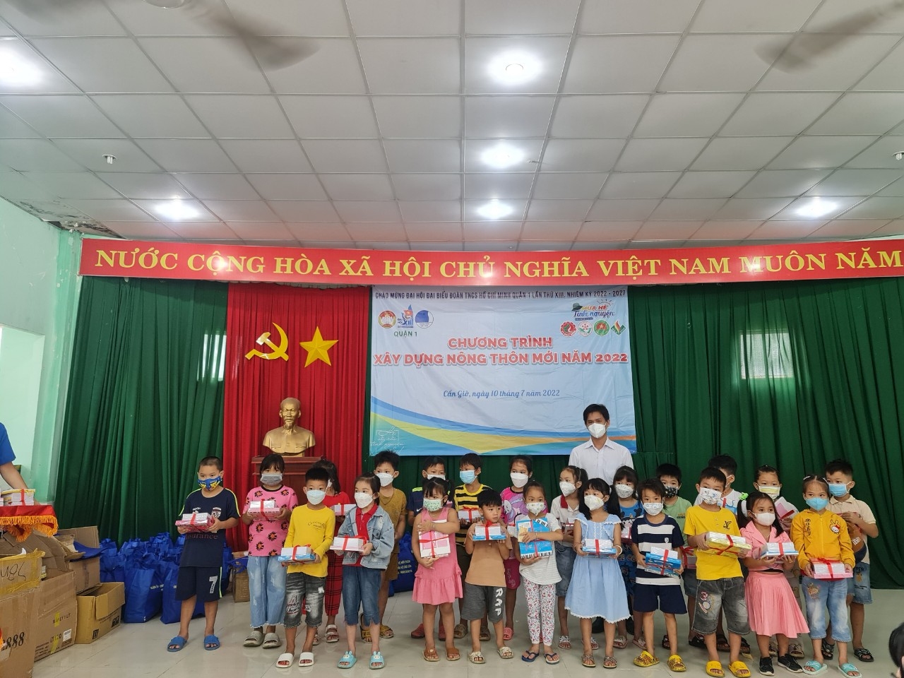 Với mục đích quan tâm chăm lo đời sống vật chất, tinh thần cho người dân, gia đình khó khăn và các em thiếu nhi trên địa bàn các xã xây dựng Nông thôn mới tại huyện Cần Giờ, chương trình xây dựng Nông thôn mới năm 2022 cùng Quận Đoàn Quận 1 đã diễn ra thành công với sự tham gia và phối hợp nhịp nhàng giữa các đơn vị.