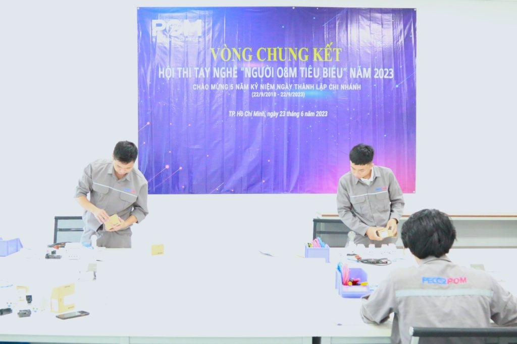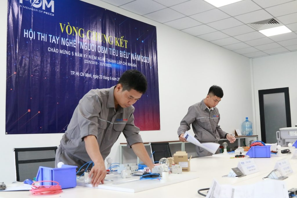 Vòng chung kết Cuộc thi Tay nghề “Người O&M tiêu biểu” năm 2023 vừa qua được tổ chức vào ngày 23/6/2023 tại trụ sở PECC2 Innovation Hub, với sự tranh tài của 14 thí sinh xuất sắc nhất của 02 nhóm thi Trưởng ca và Nhân viên O&M được lựa chọn trong số 307 thí sinh thông qua đợt thi Sát hạch nghề định kỳ và vòng thi sơ khảo được tổ chức vào tháng 5/2023.