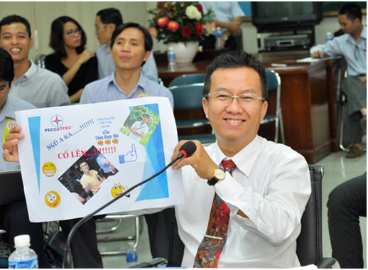 Giám khảo Dương Chánh Nguyễn cũng hòa theo không khí hội thi
