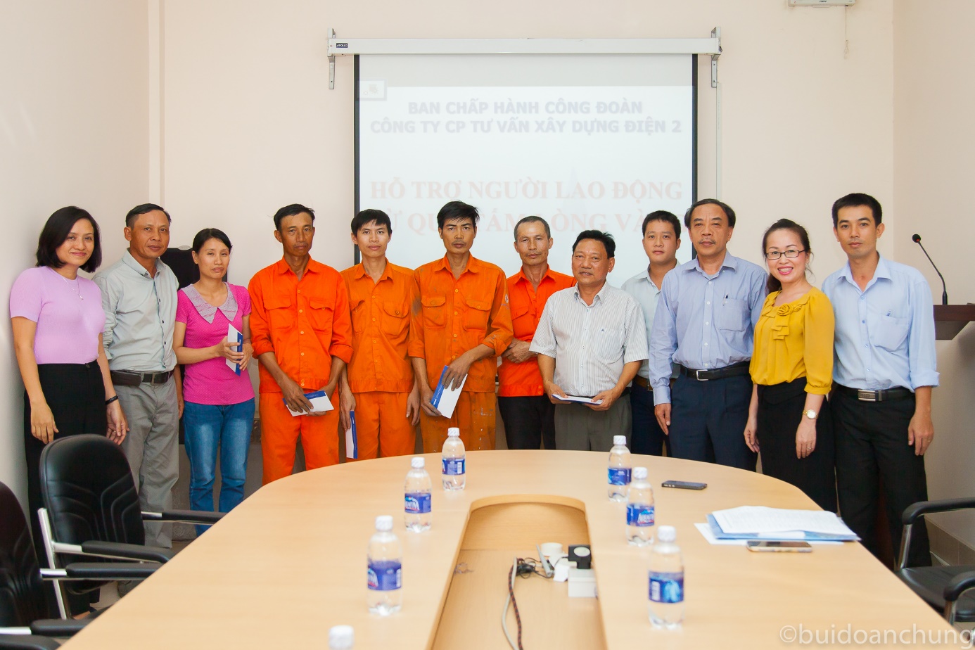 Cùng chụp ảnh lưu niệm với NLĐ được hỗ trợ và Công đoàn XNCĐ